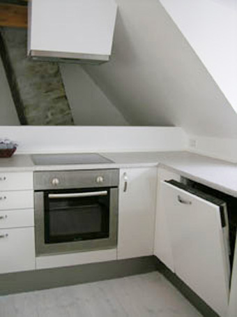 - Åbent køkken med kaffemaskine, opvaskemaskine, keramisk komfur, emfang, ovn og mikrobølge-ovn