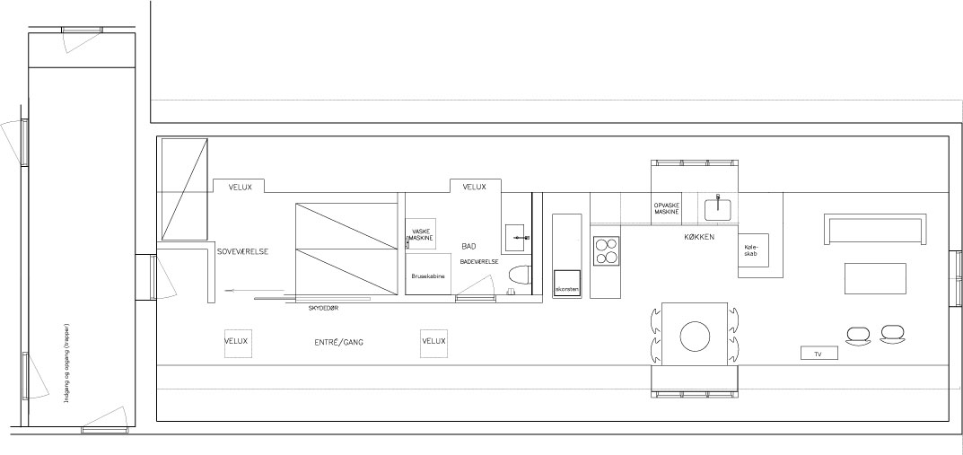 - Bad/toilet med bruseniche, vaskemaskine, tørretumbler